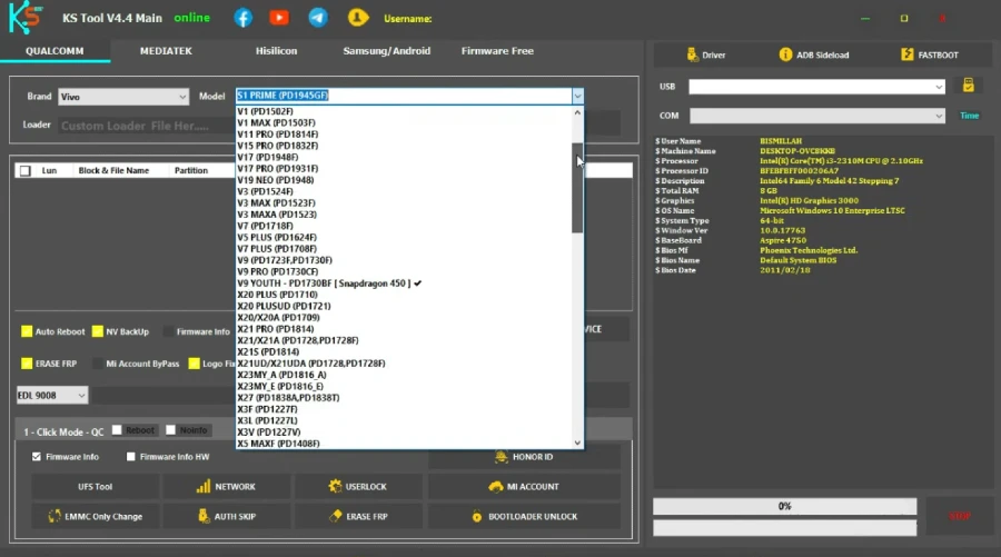 Let’s take a closer look at this tool. KS Tool v4.4 is its latest version. You can install this software on a Windows PC or laptop; it is widely used by individuals and mobile technicians alike to repair mobile devices. The interface of KS Tool has been designed with great simplicity, ensuring that even a first-time user can understand and navigate it with ease. This tool proves to be highly beneficial for mobile technicians, offering them the opportunity to fix mobile devices free of cost.
